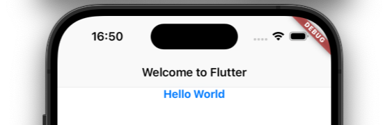화면 상단에 내비게이션 바를 구현해 보자. 안드로이드의 Appbar가 아닌 CupertinoNavigationBar를 사용하고, 가운데에 'Welcome to Flutter'라는 글씨를 넣어보았다.