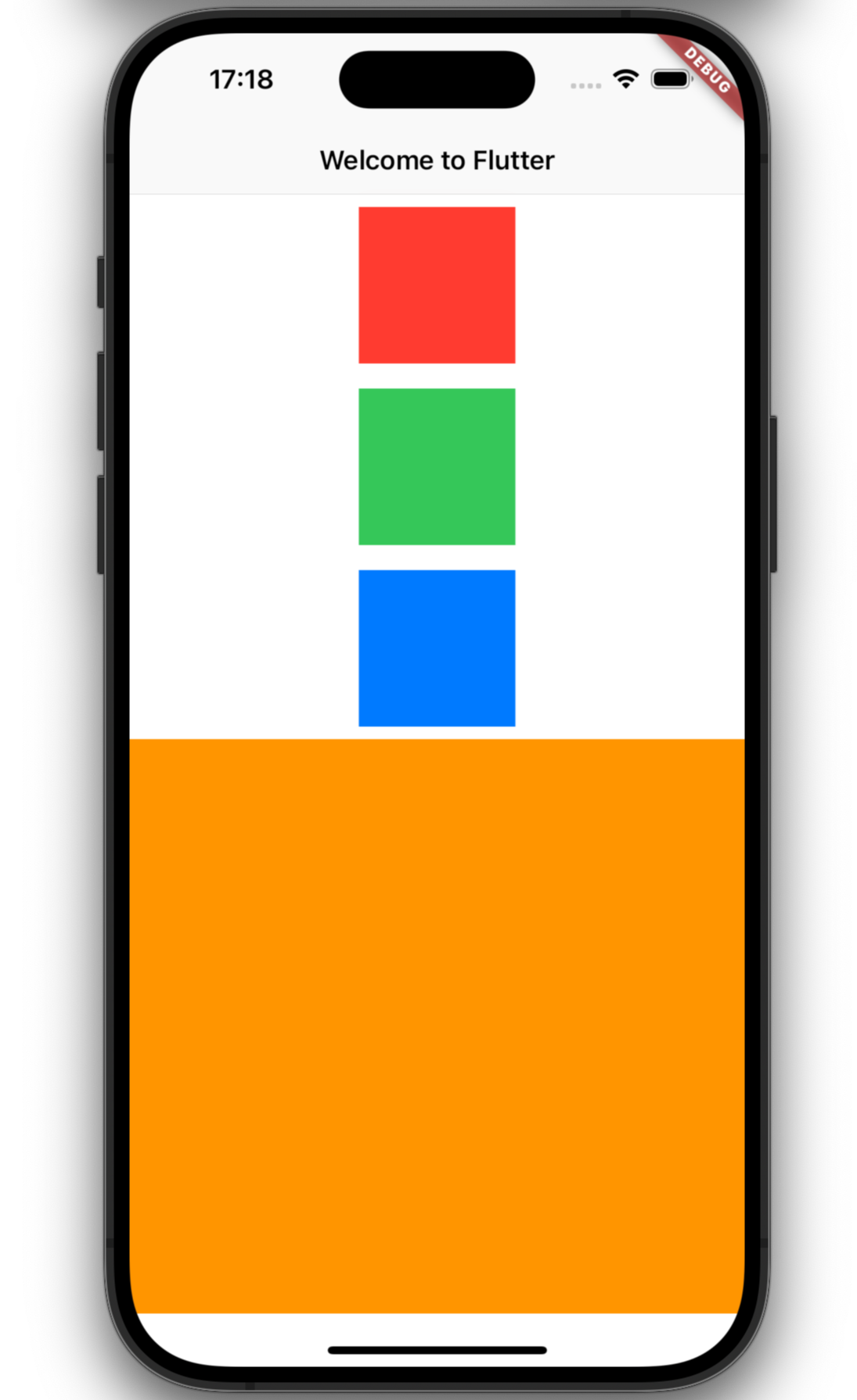 expanded 위젯은 Row/Column 위젯에서 모든 위젯들을 배치하고 남은 영역에 해당하는 부분을 사용한다. 3번 예제 코드에서 children 위젯 내에 마지막 요소로 위 코드를 추가해 주면 아래와 같은 화면 배치를 가질 수 있다.