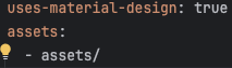 pubspec.yaml 파일에 들어가 uses-material-design: true라는 코드 밑에 assets 디렉터리를 추가해 준다.