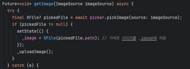 _image = XFile(pickedFile.path); // 가져온 이미지를 _image에 저장