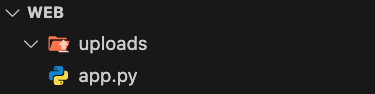 먼저 Web이라는 디렉터리를 만들고, 그 안에 uploads 폴더와 app.py 파이썬 파일을 생성한다. uploads 폴더에는 앱에서 보낸 이미지가 저장되고, app.py는 플라스크 서버를 열기 위한 코드이다.